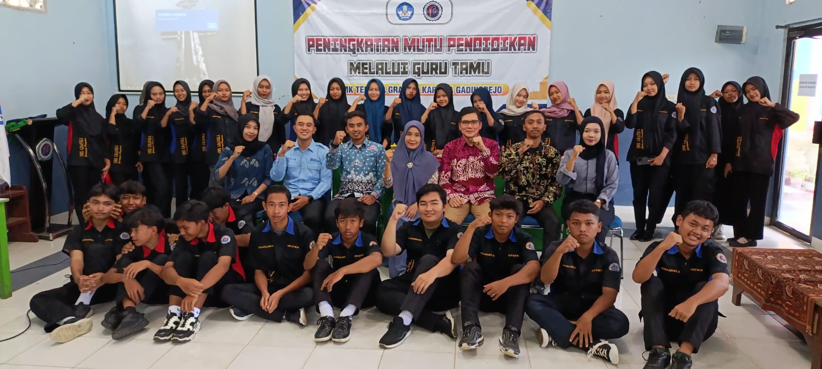 GADINGREJO 11 Desember 2025 – Dalam rangka meningkatkan mutu pembelajaran dan membuka wawasan siswa terhadap perkembangan teknologi, SMK Grafika Gadingrejo menyelenggarakan kegiatan Guru Tamu pada hari ini di Aula SMK Grafika Gadingrejo. Acara ini menghadirkan dua pemateri dari Institut Bakti Nusantara, yaitu Afrizal Martin, M.T.I dan Miswan Gumanti, M.M., M.B.A., M.Pd.